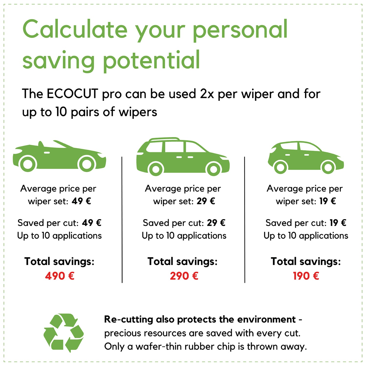 Every car driver knows it - the windshield wipers are smearing again. This is not only annoying but can also be quite dangerous. Poor visibility is one of the most common causes of accidents! Buying new wipers is often expensive and the change usually complicated. This has finally come to an end thanks to the ECOCUT pro!